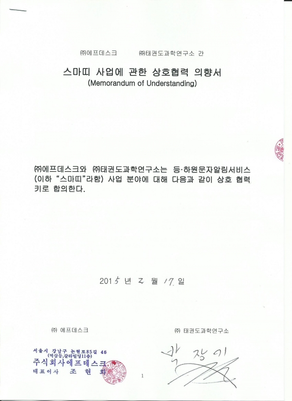 | 파일첨부 | M1502170621434_2.jpg M1502170621434_3.jpg 에프테스크mou.jpg M1502170621434_4.jpg | |||||
